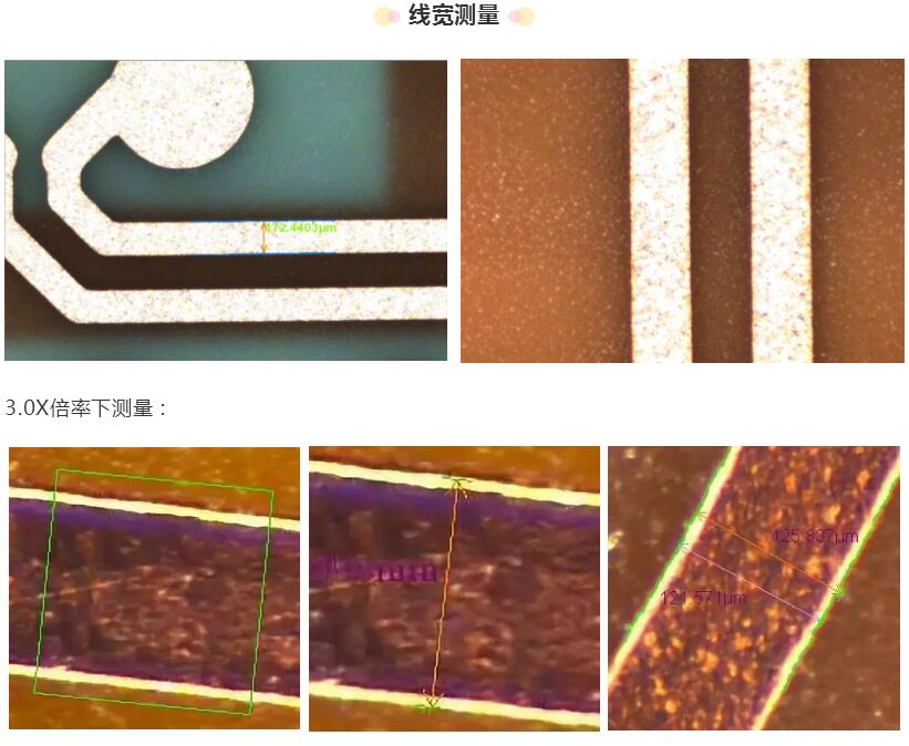 正業(yè)線寬測量儀主要應用于印刷電路板內、外層半成品經(jīng)顯影蝕刻后(上綠油前)線路的上幅及下幅寬度、線距、圓孔(相機視野范圍內)的檢測及品質分析。