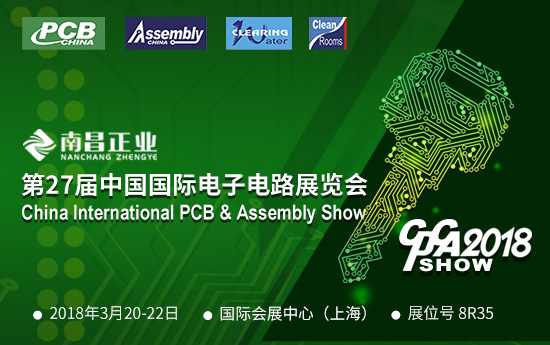 第27屆中國國際電子電路展覽會(huì)將于2018年3月20-22日在上海國際會(huì)展中心隆重開展,廣東正業(yè)科技股份有限公司旗下子公司南昌正業(yè)誠邀您參加第27屆中國國際電子電路展覽會(huì)。
